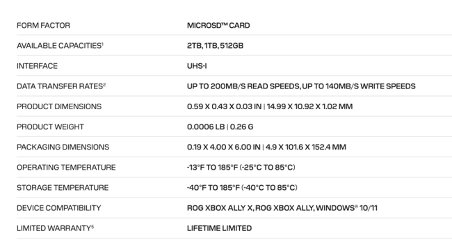 • The SANDISK microSD card for ROG Xbox Ally (X) is available for pre-order at the company’s webstore in 512GB ($69.99 MSRP), 1TB ($149.99 MSRP), and 2TB ($299.99 MSRP).