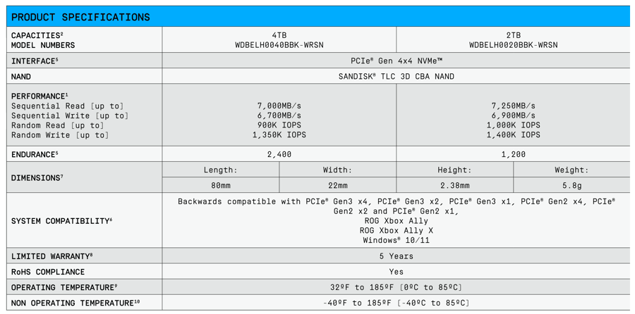 • The WD_BLACK SN7100X NVMe SSD for ROG Xbox Ally (X) and PC will be available for purchase in the coming months at shop.sandisk.com, and customers can sign up to be alerted when it becomes available. The new drive will come in 2TB ($159.99 MSRP) and 4TB ($279.99 MSRP).