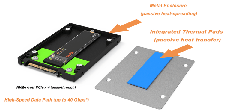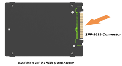 Swap M.2 NVMe SSDs using existing U.2 trays, backplanes, or mobile racks, and no new hardware required. - Standards-Based U.2 Interface (SFF-8639)