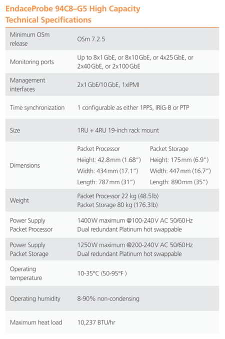 - Unlimited Scalability: stack EndaceProbes to scale from weeks to months of storage at any line rate, with capacity for expansion;