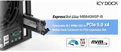 Icy Dock launches the ExpressSlot Elite MB840M5P-B adapter to transforms a PCIe 4x, 8x, or 16x expansion slot into a removable M.2 NVMe SSD bay, allowing for quick and easy SSD swaps without the need to open computer case.