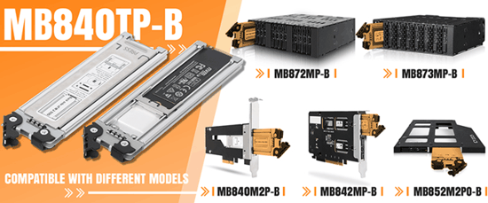 Specially designed MB840TP-B removable drive tray effortlessly enables interchangeability across various models.