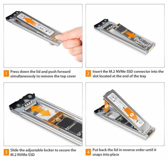 Compatible with PCIe NVMe SSD with all drive length including 2230 (30mm), 2242 (42mm), 2260 (60mm), 2280 (80mm), and 22110 (110mm)