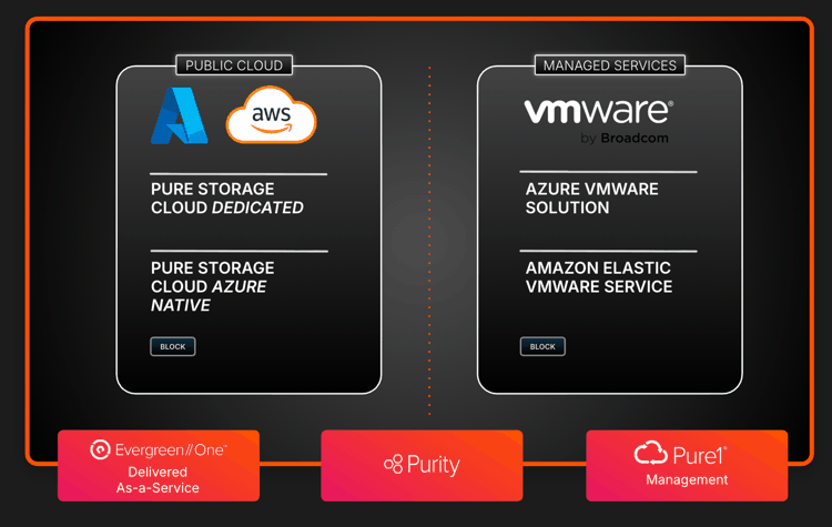 - Pure Storage Cloud Azure Native: Jointly developed with Microsoft Corp., this first-of-its-kind fully managed block volume as a service delivers Pure Storage enterprise-grade storage to Microsoft Azure, extending the benefits of the Pure Storage Cloud into Azure with a native experience. Initially supporting Azure VMware Solution, this service makes moving data-heavy apps to the cloud simple – no refactoring, no extra overhead, the same common APIs and toolsets, giving you a clean path to the cloud that doesn’t involve freezing in carbonite. It’s the next leap forward in our ability to extend the power of the Pure Storage platform to the cloud.