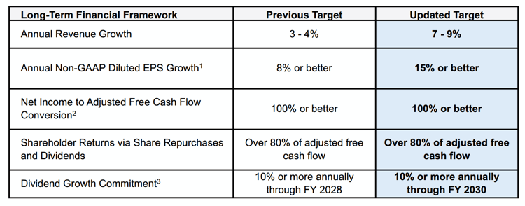 • Extended commitment to grow quarterly dividend 10% or more annually through fiscal 2030