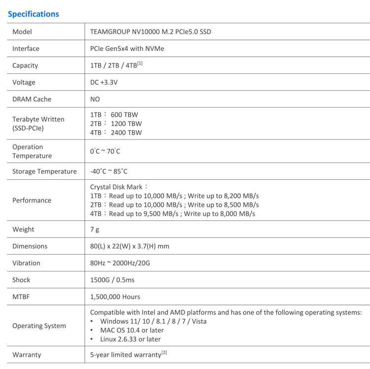 Backed by a 5-year warranty, the NV10000 M.2 PCIe 5.0 SSD supports Teamgroup’s patented S.M.A.R.T. monitoring software (2), which allows users to check the drive’s health status and perform quick setup and diagnostics, providing a secure and reliable user experience. In line with Teamgroup‘s commitment to sustainability, the NV10000 adopts eco-friendly, recyclable packaging that meets RoHS and REACH environmental standards, demonstrating the company’s dedication to responsible, sustainable product development.