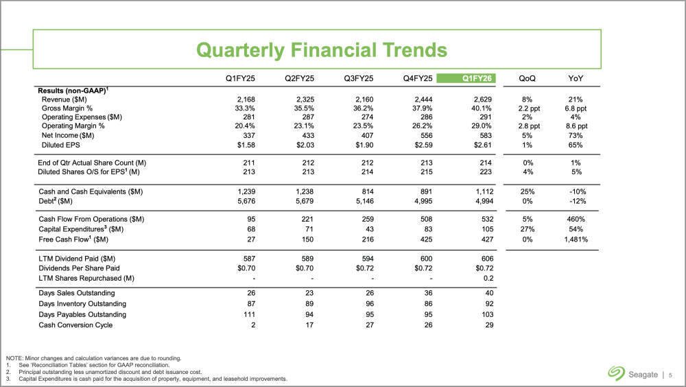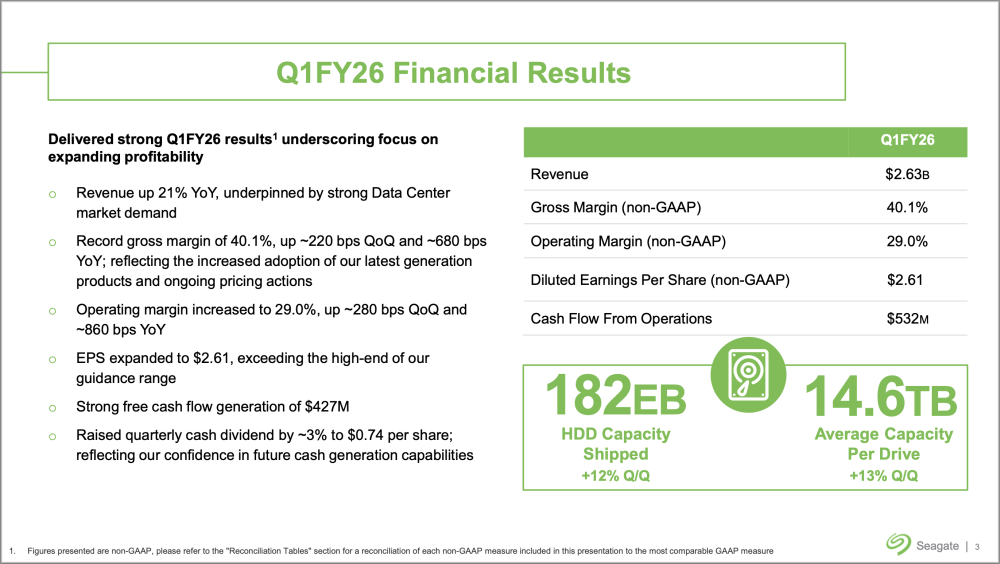 Seagate Technology: Fiscal 1Q26 Financial Results
