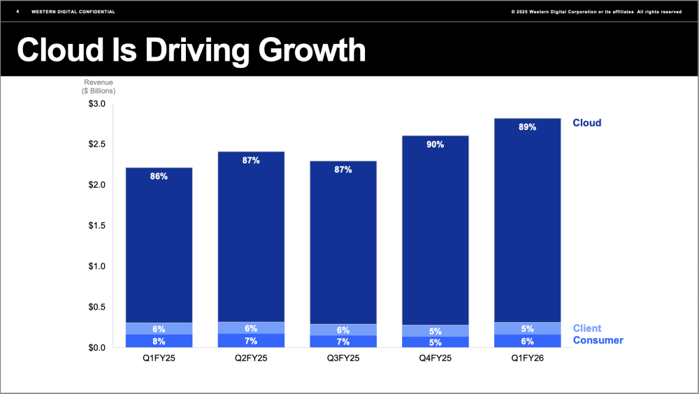 It reflects the solid demand for HDD products by cloud providers and hyperscalers in particular wishing to select dense drives, more capacity on the same footprint, with an attractive $/TB. Again the revenue profile is really unbalanced as client and consumer business appear to be anecdotic even if they grew marginally.
