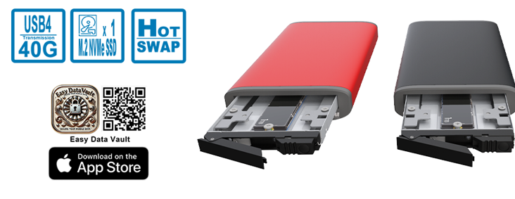 Offering 40Gbps USB4 NVMe and U.2 enclosure with easy-swap tray and iOS App