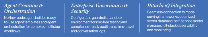 Hitachi iQ Studio is designed to help enterprises build, deploy and manage AI agents and applications at scale, acting as a turnkey integration hub with a no-code and low-code agent builder and a library of industrial AI solution templates that enable rapid prototyping and production across diverse data environments. This helps enterprises operationalize their AI solutions faster while maintaining full control over their data and models.