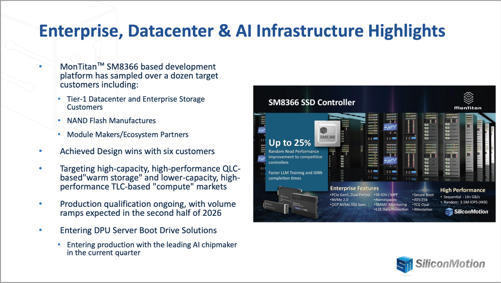 - eMMC+UFS controller sales: 3Q of 2025 increased 20% to 25% QoQ and increased 35% to 40% YoY