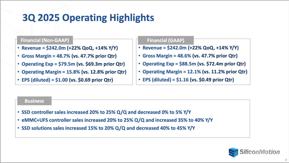 Silicon Motion: Fiscal 3Q25 Financial Results