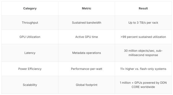 DDN CORE is optimized for the Nvidia AI Data Platform and Nvidia AI Factory architectures and validated on Nvidia GB200 NVL72, Nvidia Spectrum-X Ethernet, and Nvidia BlueField DPUs – guaranteeing peak throughput, consistency, and scalability.