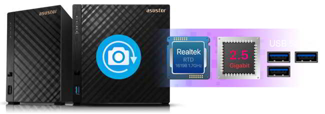 Powered by the Realtek RTD1619B quad-core 1.7GHz processor, the Drivestor Gen2 series provides stable multitasking performance. Built into these models are a 2.5GbE network port, which benefits from significantly improved CPU performance, while maintaining backward compatibility with Gigabit and 100MbE networks. Whether streaming multimedia, or transferring large files, your NAS enables you to enjoy smooth, uninterrupted performance. The Drivestor Gen2 series also supports H.264 and AV1 decoding, enabling playback of 4K UHD content at up to 60f/s. All this hardware combined with LooksGood, the Drivestor Gen2 series ensures a fluid and stable high-definition entertainment experience.