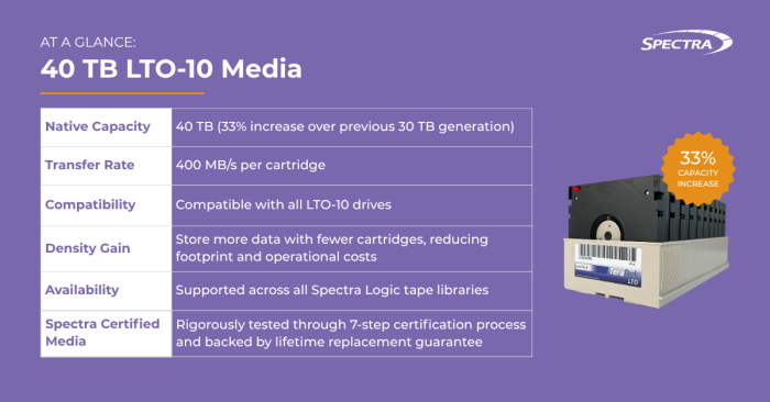 With 40TB LTO-10 media, the industry takes another leap forward – extending tape’s unmatched value in long-term data protection and cyber-resilience while Spectra reaffirms its leadership in archive density, sustainability, and affordability.