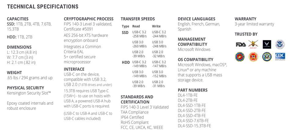 DL4 – FIPS 140-3 Level 3 Portable Hard Drive