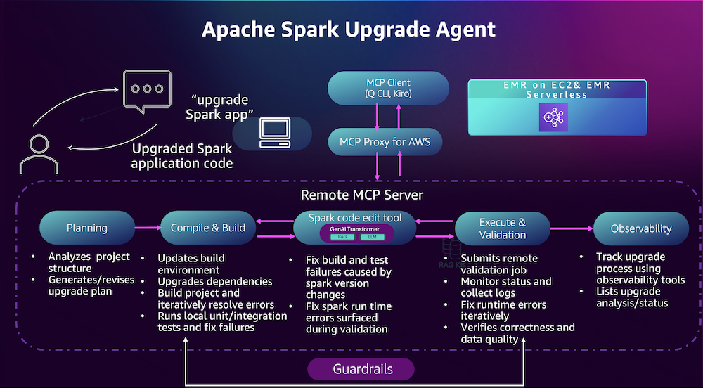 AWS announces the Apache Spark upgrade agent, a new capability that accelerates Apache Spark version upgrades for Amazon EMR on EC2 and EMR Serverless.