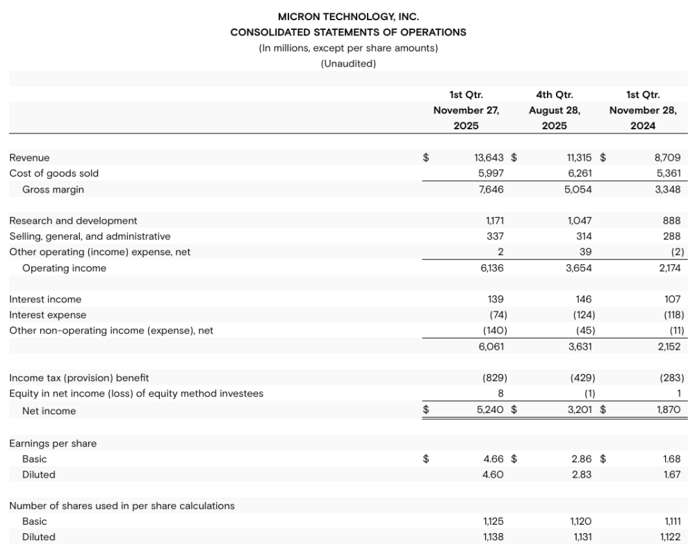 Micron Technology: Fiscal 1Q26 Financial Results