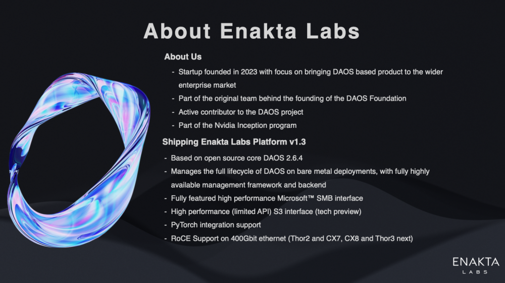 Beyond raw speed, Enakta Labs positions itself as an antidote to what it sees as common enterprise storage frustrations. Its presentation highlights familiar pain points: GPUs sitting idle while waiting for data, lengthy filesystem checks, overprovisioned systems built to hit peak performance, and the complexity of deploying and operating DAOS without specialist expertise. Enakta’s answer is a managed, opinionated platform that abstracts DAOS complexity while preserving its advantages. Support for multiple access methods, including a high-performance SMB interface and a limited S3 interface in preview, is intended to broaden appeal beyond traditional HPC workloads into AI/ML, fintech, and media and entertainment.