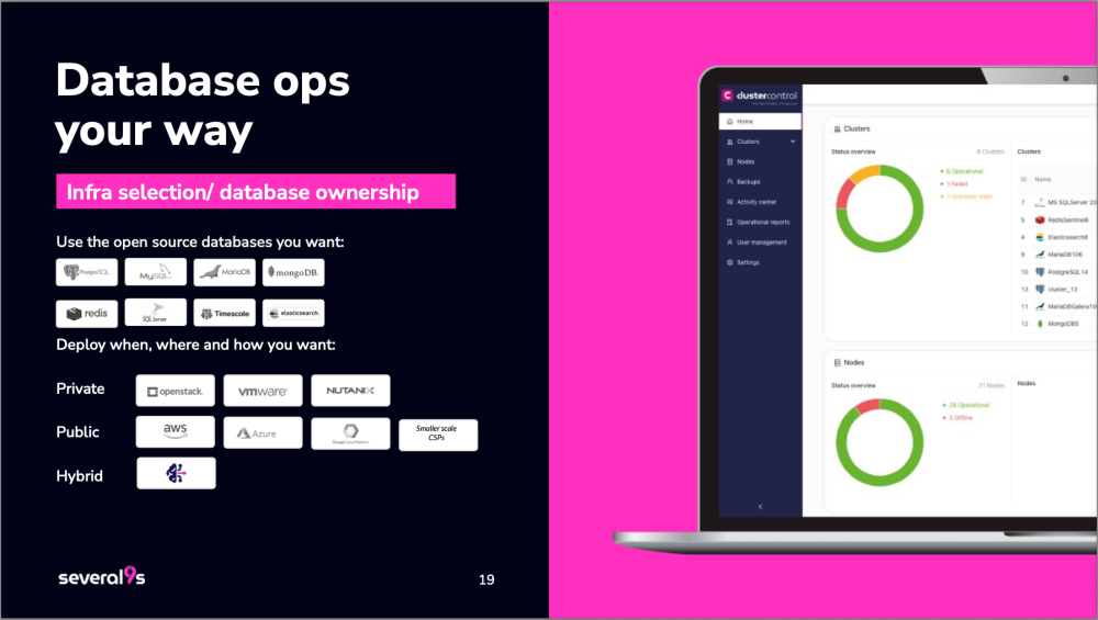 The technical foundation of this vision is ClusterControl, Severalnines’ automation platform, which delivers what the company describes as “12 operations, one platform.” These include provisioning, scaling, backup management, failover, monitoring, security, upgrades, compliance, and integration with DevOps tooling. The platform supports a wide range of open-source databases – including MySQL, PostgreSQL, MariaDB, Redis, and others – and is designed to manage polyglot database environments across hybrid and multi-cloud infrastructures.