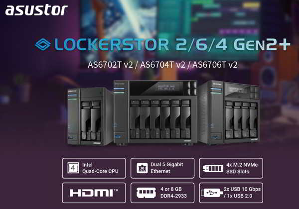 This is a Press Release edited by StorageNewsletter.com on December 23, 2025 at 2:01 pmAsustor Inc. launches the professional storage cloud Lockerstor Gen2+ desktop NAS series, including 3 models: Lockerstor 2 Gen2+, Lockerstor 4 Gen2+, and Lockerstor 6 Gen2+.