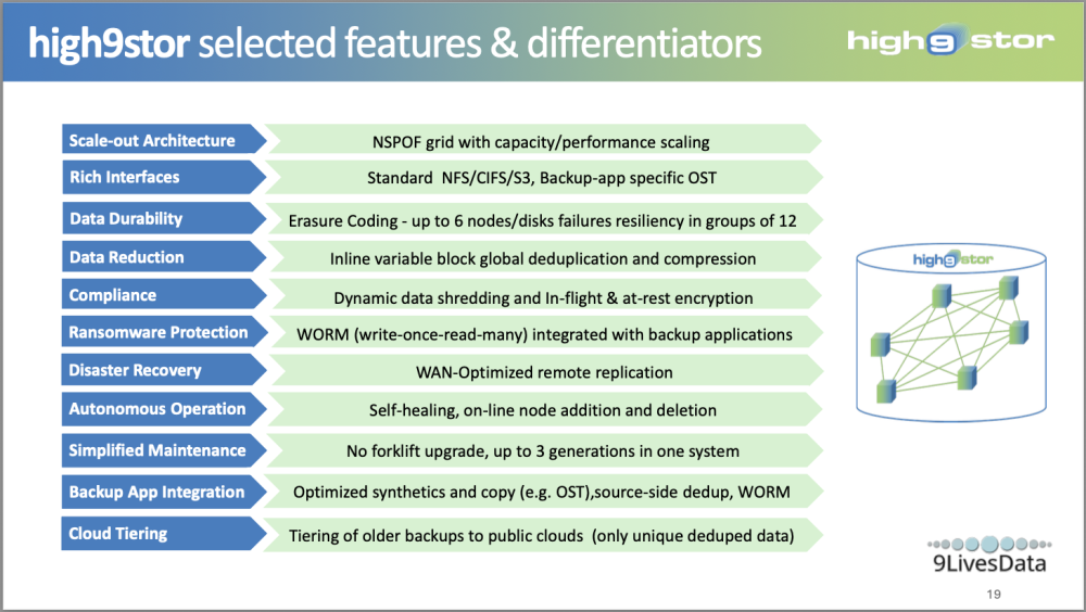 The developer of NEC HYDRAstor continues compatibility with its new product High9Stor
