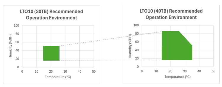 With a more durable base film, the LTO-10 (40TB) supports an expanded temperature range of 15°C–35°C and up to 80% humidity at 15°C–25°C, enabling reliable use in diverse and challenging conditions.