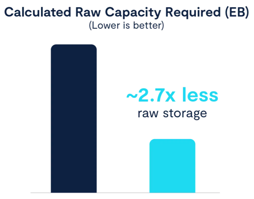 Back in September, in fact, one of our major hardware suppliers, Solidigm, published a whitepaper detailing (like, in great detail) the efficiencies of running Vast on Solidigm SSDs. They found that the combination can cut TCO for an exabyte of storage by nearly 60% compared with storing the same data on hard disks, and compressed the hardware footprint from 52 racks to 5 racks.