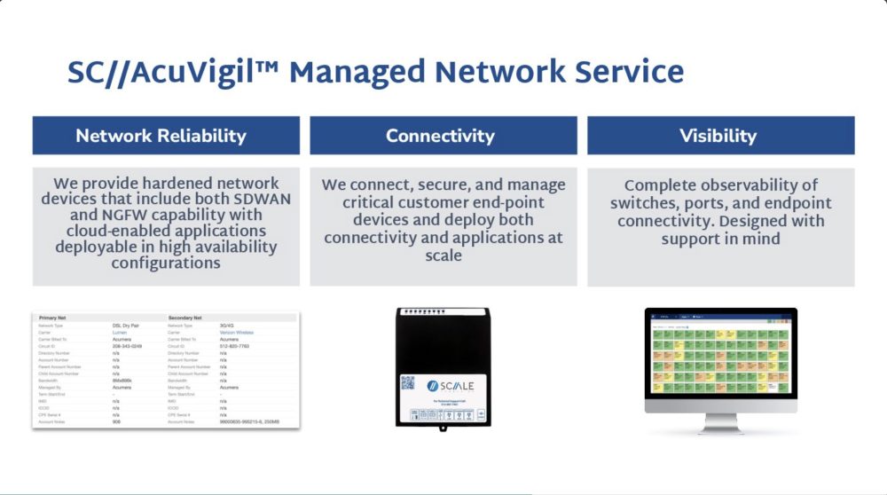 - Scale Computing AcuVigil – Managed network service delivering SD-WAN, NGFW capabilities, endpoint connectivity, and secure edge networking with full observability