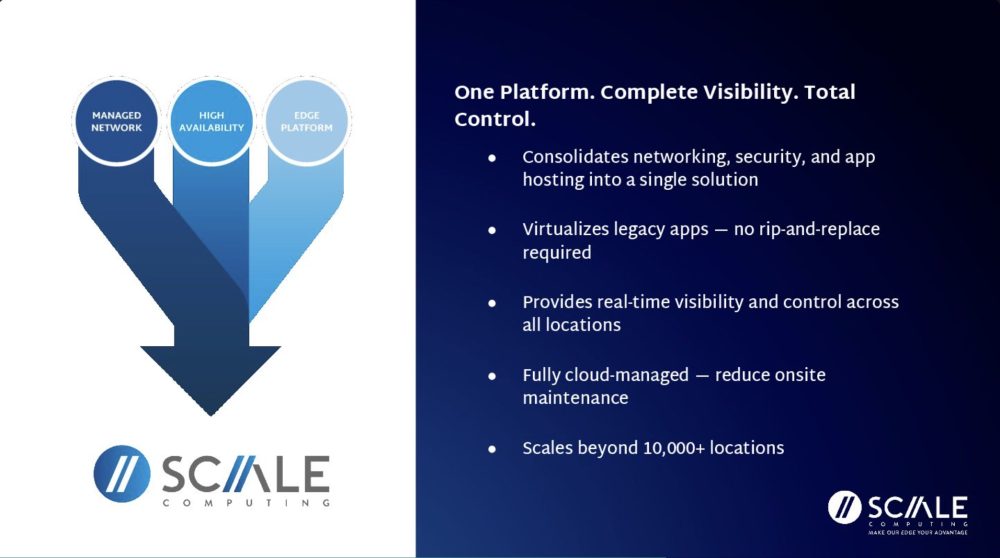 - Scale Computing Platform – Edge computing solution delivering integrated compute, storage, and virtualization at the edge