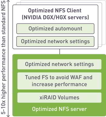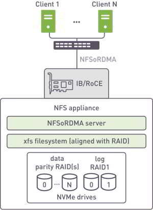 - Extreme throughput using standard NFS, accelerated with RDMA (RoCE or InfiniBand)