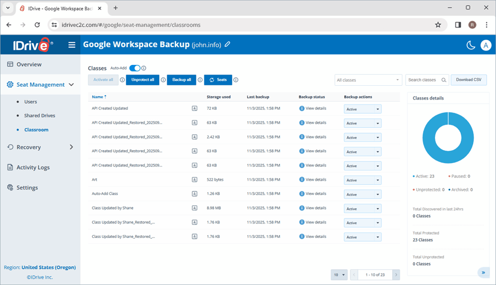 IDrive’s Google Classroom Backup provides organizations with an intuitive, secure way to defend against data loss by: