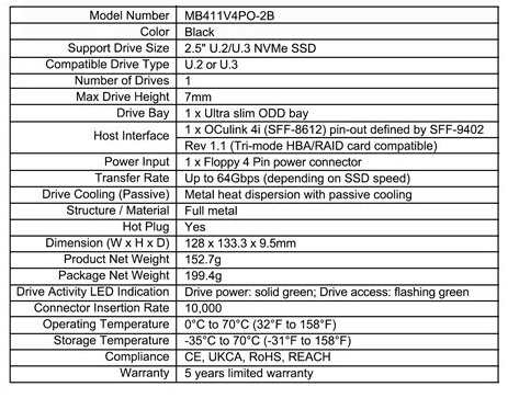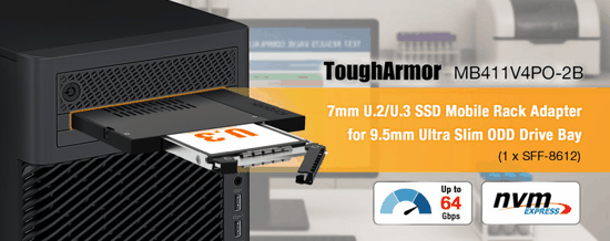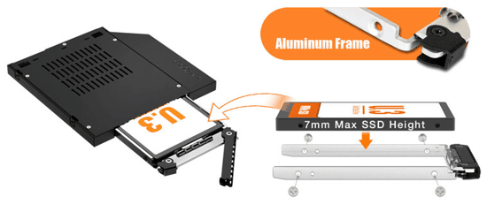 - Converts a 9.5 mm Ultra-Slim ODD bay into a removable U.2/U.3 SSD bay