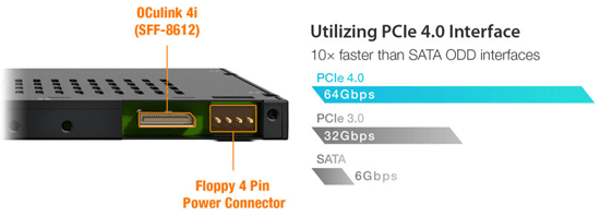 - OCuLink 4i (SFF-8612) interface, PCIe Gen 4 x4, up to 64Gb/s EZ-Slide Slim tray for fast SSD maintenance