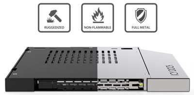 Built with ICY DOCK’s renowned ToughArmor all-metal construction, the MB411V4PO-2B ensures maximum durability and protection for both the drive and the device itself. Its ruggedized metal enclosure and tray meet UL94 V0 flammability requirements, providing enhanced safety and reliability for server rooms, military, and industrial applications where stability and endurance are essential.