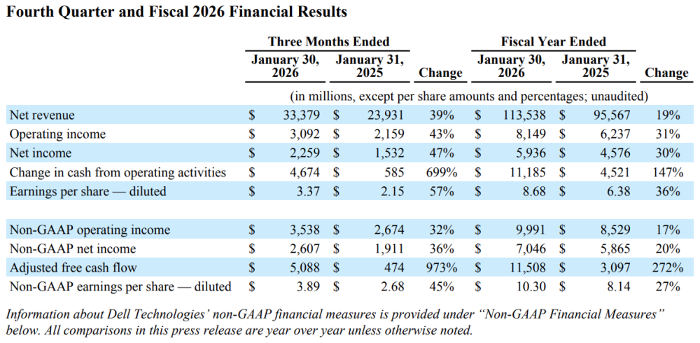 Dell Technologies: Fiscal 4Q26 and FY26 Financial Results