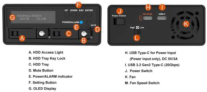 Designed around USB-C connectivity with up to 20Gb/s bandwidth, the UR2M-B32+ supports RAID-1, JBOD, and BIG at the hardware level. Its dual-cable design separates data from a dedicated PD 5V/3A power input, helping improve stability during sustained transfers and heavier NVMe workloads.