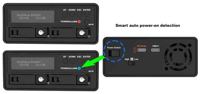 Check RAID mode, SSD status, and rebuild progress directly on the enclosure for faster status checks and more confident day-to-day operation.