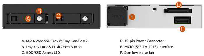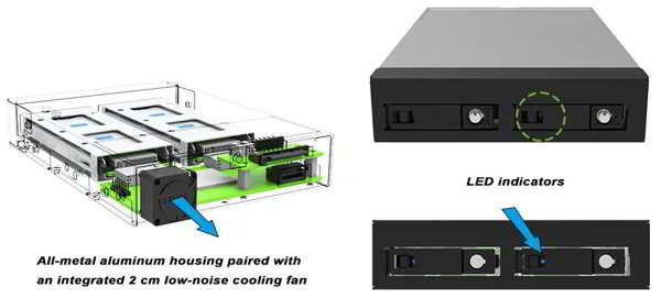 • Data Centers / Server Racks: Increase NVMe density in a standard bay; all-metal enclosure with active cooling supports continuous high-load operation