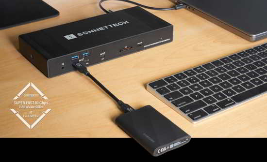 The Echo 21 dock’s internal M.2 NVMe SSD socket enables users to add up to 8TB of onboard storage, supporting data transfers up to 3,300MB/s.
