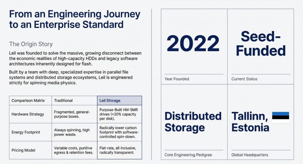 We had the opportunity to meet Leil for the second time during the recent 67th edition of The IT Press Tour held last week in Sofia, Bulgaria. The first meeting was in April 2024 in Roma, Italy, during the similar event when we unveiled Leil to the world.Leil is an Estonian startup founded in 2022 and headquartered in Tallinn. Currently seed-funded, the company was built by engineers with deep expertise in parallel file systems and distributed storage. Its core mission is to bridge the growing gap between the economic potential of high-capacity hard disk drives (HDDs) and legacy software architectures that were originally designed for flash/SSD storage. In short, Leil builds software that makes HDDs perform the way they were physically designed to, something no mainstream storage platform currently does. The presentation was driven by Alexander Ragel, CEO and co-founder.