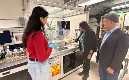 From left are Kavya S. Keremane, postdoctoral researcher in materials science and engineering;
