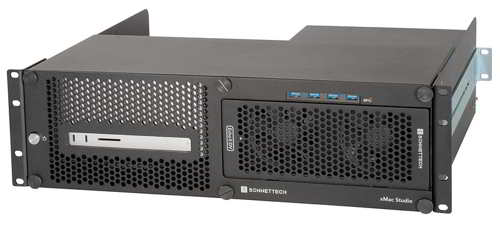 The rackmount fits standard 19-inch equipment racks and provides convenient access to front and rear Mac mini ports, making it for studio, OB truck, and rack-based production environments.
